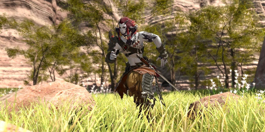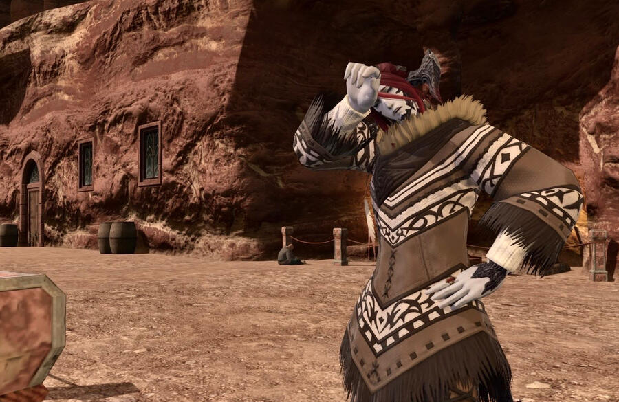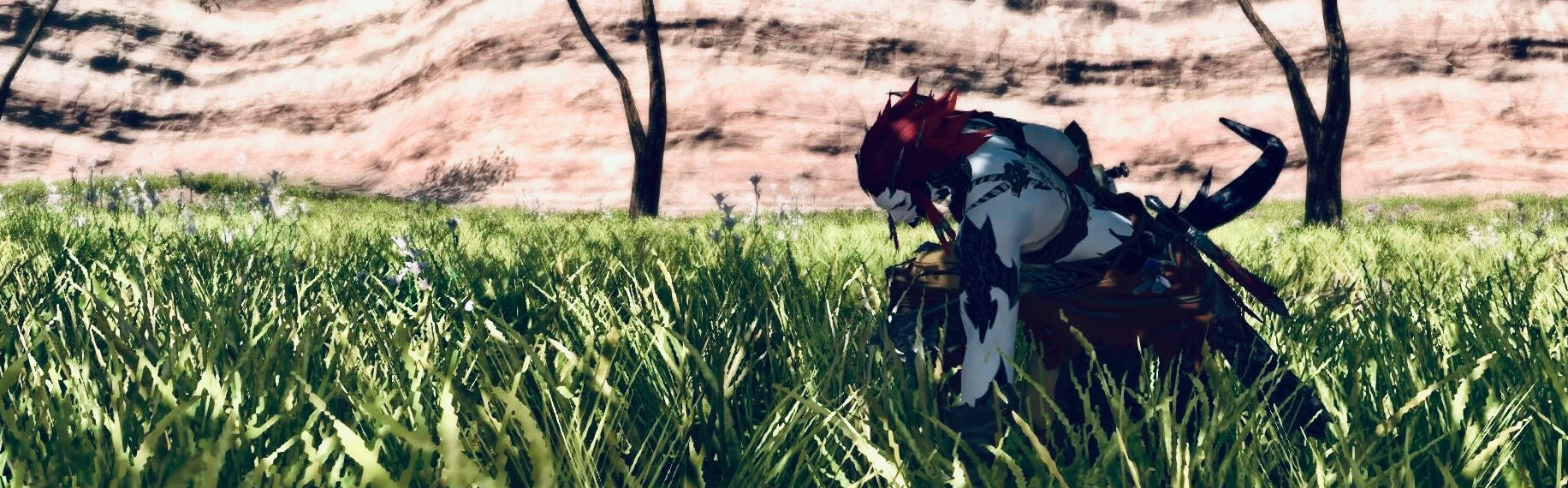 Sozen’s a chronic wanderer and gets into all sorts of trouble hunting beasties. He prefers to hunt alone, but every now and then he works with other trackers or signs onto a team to bring down a nasty mark. Perhaps you’ve seen him on a mission or run into him in some dark lair.If you come from one of the Ala Mhigan villages in upper Gyr Abania, you may know his troublemaker of a brother, Sahir. He’ll be eager for any news of the man’s whereabouts, and to apologize for any discomfort you may have suffered at his hands.If you offer to feed Sozen, he’ll most likely overcome his initial hesitation to interact. Who knows, you might even strike up a conversation about hunting or get him to tell you about one of his recent adventures!