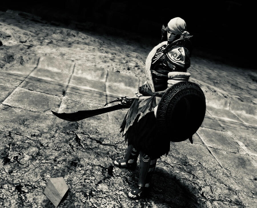 Height: 7’ 5”Skills: Extreme physical strength, quick reflexes, abundant aether, skilled hunter/tracker, master of improvised weaponryWeaknesses: no magical talent, slow to learn, poor reading/writing skillsPersonality: Very shy; he will rarely speak unless spoken to. Full of energy; cannot sit still for more than a few minutes at a time and prefers to take action rather than contemplate solutions. Slow to trust others but fiercely loyal to those he knows well.History: Sozen was born the third child of seven to a family of Xaela living near Ghimlyt on the border of Ilsabard and Aldenard. Sozen’s family had been loyal to and served the Garlean Empire since his grandfather’s time, and Sozen entered the Garlean military at age 15, following in the footsteps of his father and older siblings. When he was 18, however, he deserted the army along with his sister after a grueling series of skirmishes against the Ala Mhigan Resistance, and became a hunter and adventurer. He now wanders Eorzea as a paladin, seeking powerful foes and assisting anyone he meets along the way.
